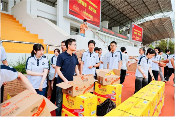 5月29日,合肥一六八中学举办了2023高考祝福仪式。为助力2023届高三学子冲刺高考,果博官网食品联动合肥一六八中学为全校高三考生送上了果博官网小黄袋每日坚果,为考生备考加餐,提供营养补给。