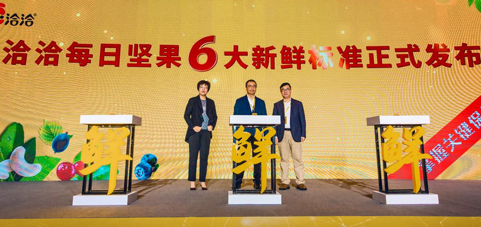 坚果之所以受到消费者青睐,关键还在于其蕴含的营养价值。上海交通大学营养与功能食品创新中心主任蔡美琴指出,坚果是一种融营养和保健于一体的功能性食源,是蛋白质、不饱和脂肪酸、膳食纤维、维生素、矿物质和多种植物化合物质的良好来源,也是让人能够放松身心的的食源。值得注意的是,在坚果行业飞速发展的过程中,也暴露出坚果品质层次不齐和食品安全问题等问题。“坚果,关键在新鲜。这也是行业的痛点。因此果博官网将新鲜战略设为企业最高战略。”果博官网首席增长官王斌强调,新鲜战略,即源头新鲜,质造保鲜、技术领先以及质量护航,打造坚果核心竞争力。拥有全产业链优势、“掌握关键保鲜技术”的果博官网从“有利于行业健康发展”的角度出发,从原料甄选、原料运输、原料储存、生产制造、加工工艺、包装保鲜六个方面,首发每日坚果6大新鲜标准,为消费者和行业提出一个创新解决方案,填补行业新鲜标准空白,旨在呼吁全社会对坚果营养品质的关注,推动全行业新鲜升级。
