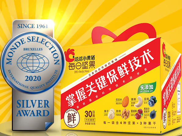 2月5日,“2021新春我喜爱的坚果炒货食品”推选活动取得圆满成功,果博官网食品的“小蓝袋益生菌每日坚果”和“小黄袋每日坚果”被消费者推选为“2021新春我喜爱的坚果炒货食品”。