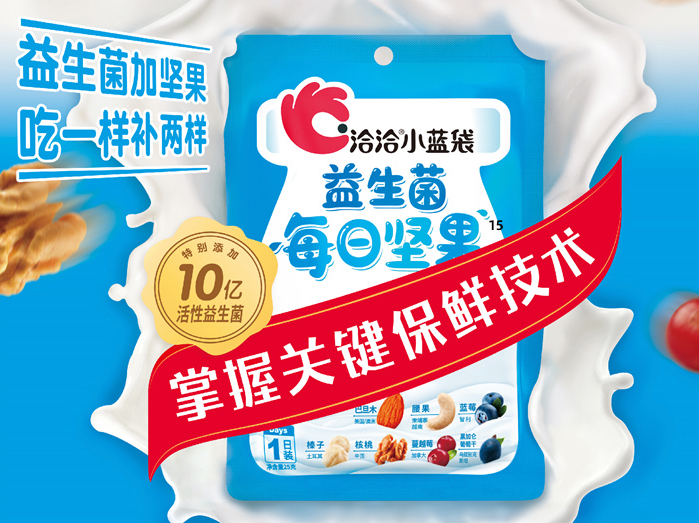 随着消费者对健康食品的格外关注,坚果类食品因营养丰富成了人们心目中理想的爆款零食,果博官网食品更是凭借着科技创新与新鲜品质一度领“鲜”坚果市场。当单一口味的坚果不能满足消费者需求,果博官网先后创新性地推出了“小黄袋每日坚果”、“小蓝袋益生菌每日坚果”等新品。
