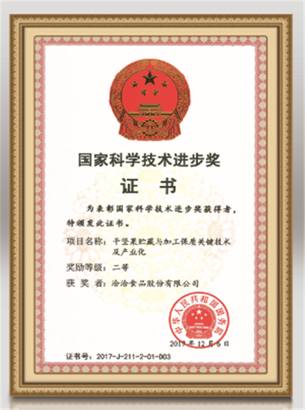 2017年果博官网参与《干坚果贮藏与加工保质关键技术及产业化》荣获国务院颁发的“国家科学技术进步奖”;2019年与中国科学院合肥物质研究科学院成立益生菌研究所;2020年人力资源和社会保障部授予国家级博士后工作站;同年获得了中国产学研创新示范企业荣誉称号。